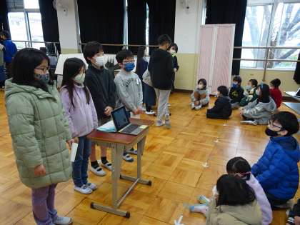 引き続き、学習発表会の様子です。練習では相手を意識して,話し方や目線の向きなどを大切にしてきました。終わった後のふりかえりでは「3年生が聞きながら頷いたり反応したりしてくれてうれしかった。」や「自分たちの発表に関心を示してくれて嬉しかった。」ということを言っている児童がいて、達成感を感じている様子でした。