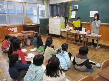 おもちゃの作り方の発表に,静かに姿勢よく聞けていました。