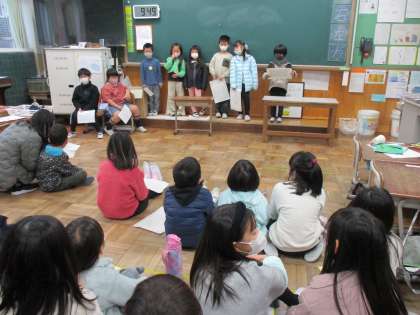 1時間目は,2年生が発表のお手本を見せてくれました。