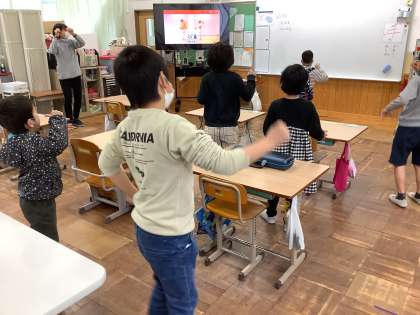 ダンスは最近の曲に,ふりを合わせて,楽しく踊ります。