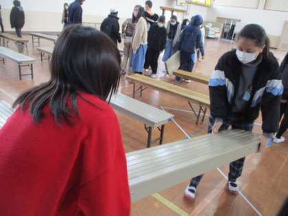 6年生は,学校の代表として,最高学年としてのお仕事として,中間休みに長椅子並べをお手伝いしました。