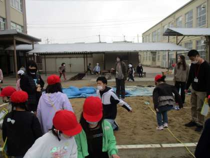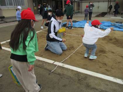 中間休みに,ミニ体力テストで立ち幅跳びをしました。