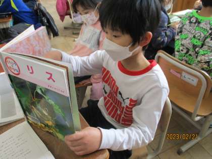 赤ちゃんの様子を図鑑で調べています。