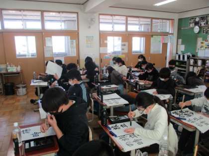 今日の書写は,小学校最後の習字でした。