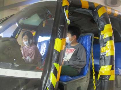 シュミレーターで,ヘリコプターを操縦し,救助活動をしたり,子どもたちが消防隊となり,放水して火事を消したりしました。