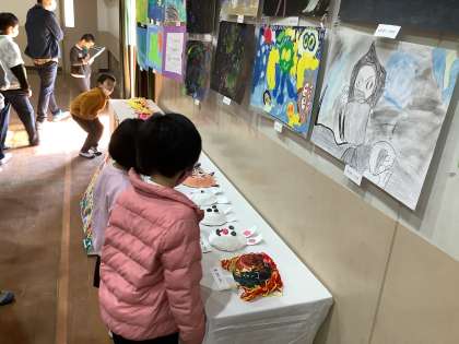 自分たちのクラス以外の作品をみられると,子どもたちはワクワクしていました。