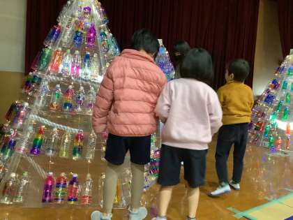 ステージ上にあるペットボトルアートをみると「きれい!」と言ってニコニコ顔でした。