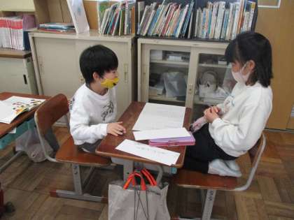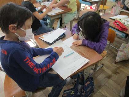 「これはなんでしょう」で,問題のヒントを出す順番を考えました。二人〜三人で話し合って決めていました。今日は国語でパソコンを使い,撮った画像を順番に繋げる練習をしました。パソコンにも慣れていってほしいです。