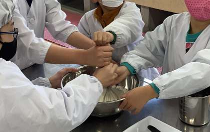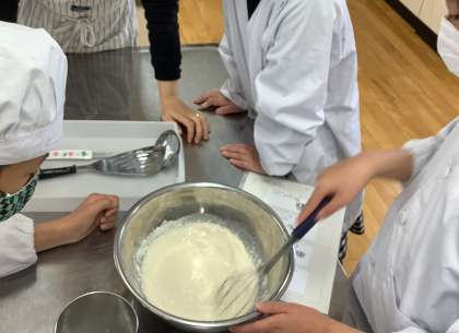生活単元学習でクレープづくりをしました。グループで係を決めて準備をしたり協力して生地を作ったりしました。その後はそれぞれ自分の分を焼きました。うまくひっくり返せるかみんなで注目し,歓声があがりました。好きなものをのせて,おいしくいただきました。