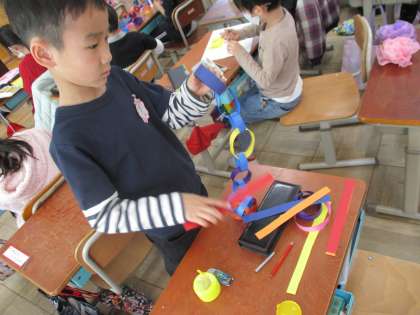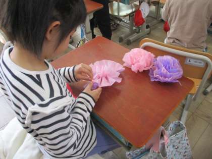 お花などの飾りをたくさん作って