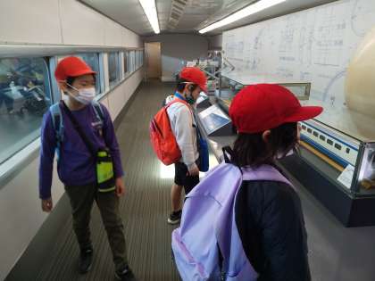 電車に関する色々な展示を前に,真剣に見入ったり大はしゃぎしたり,思い思いに楽しんでいました!