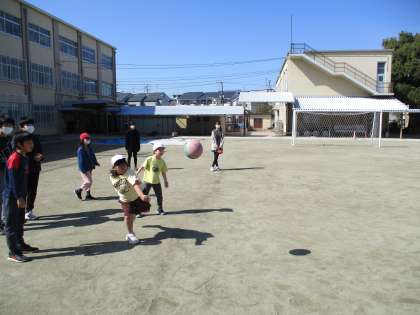 6年生は、1年生に優しく声をかけながら一緒に遊んでいました