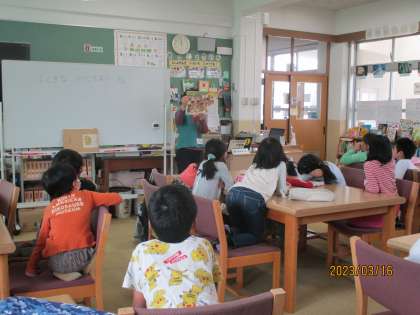 借りていた本を返したり,学校司書の先生の読み聞かせを聞いたりして,