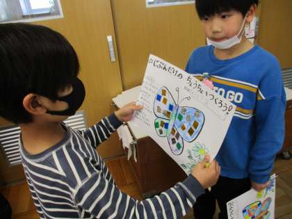 自分がデザインした蝶の羽の色を
