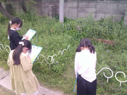 理科の学習で、植物や動物の観察をしました。細かく色や形や大きさをみて、上手に絵や文章を作成していました。