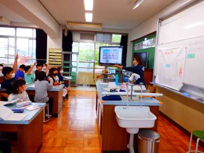 4年生から理科は、教科担当の先生による授業を受けています。子どもたちは、理科室での学習に意欲いっぱいに取り組んでいます。