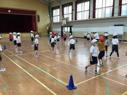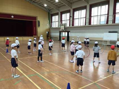 初めて活動する子もいましたが,フープを転がすお友だちの様子を見て真似をして,とてもじょうずに転がしていました。
