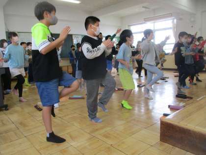 手拍子だけではなく,足踏みをして体全体でリズムを感じると,リズムが刻みやすかったり,難しいリズムもできるようになったり,音を楽しみながら学習していました。
