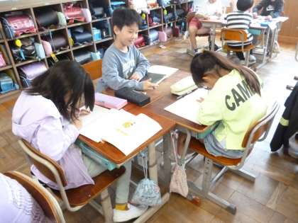 国語で,友達のことを知るために質問をし合う活動をしました。順番に好きなものや,出来事について話し,それを聞いてもっと詳しく知るための質問をする,という活動です。よく聞いて質問を考えるのもなかなか難しそうでしたが,「〇〇さんて,こんなことが好きなんだ」「〇〇さんのことが,よくわかった」と,子どもたちは嬉しそうに話していました。