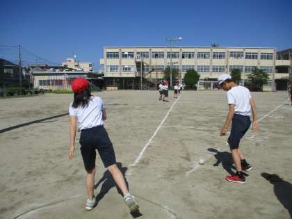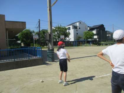 きれいな青空の下で,ソフトボールの記録にチャレンジしました。