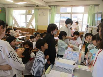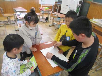 1年生に折り紙の折り方を教えてあげてプレゼントしたり,