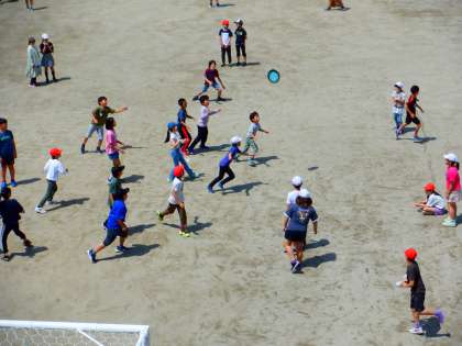 休み時間に、クラス遊びで「ドッジビー」をしました。『遊び係』さんが、みんなで楽しめるように企画・運営をしてくれています。
