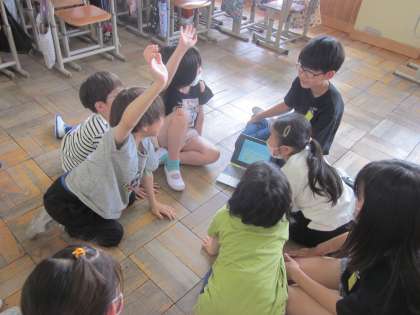 今年の「1年生を迎える会」は、今年復活したたてわりグループで行われました。1年生の友達に吉祥院小学校のことを知ってもらうために、6年生が「吉祥院クイズ」を用意してくれました。答えるのは1〜3年生。4〜6年生はヒントを出して応援です。吉祥院5年目の5年生ならすぐ分かるクイズから、5年生でも悩むクイズまであり、みんなでワイワイと盛り上がり、さらに仲が深まりました。