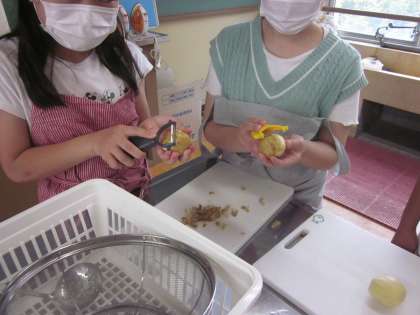 初めて包丁やピーラーを使う児童も多く,緊張した様子でした。