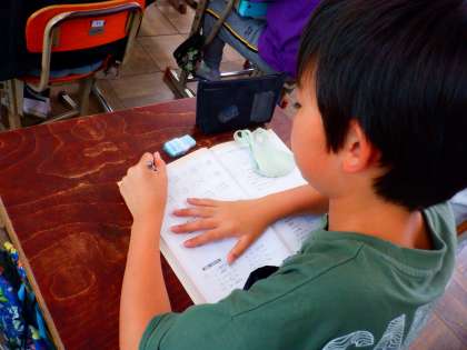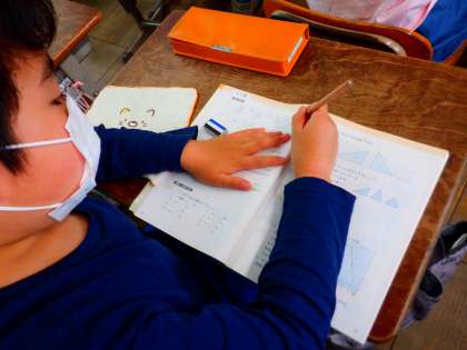 算数の学習で、復習ページに取り組みました。これまでに学習したことを生かして、活用ができるといいですね。