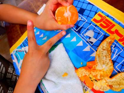 給食で「みかん」が出ました。暑い日だったので、冷たいみかんに大喜びの子どもたちでした。
