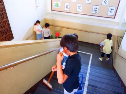 毎日、そうじを頑張っています。理科室や階段もきれいにそうじをしています。