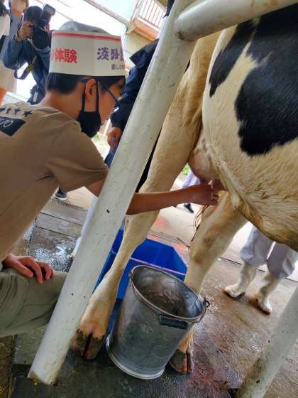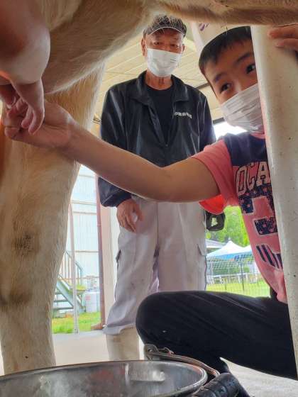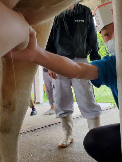 くすのき 修学旅行 牛の乳しぼり