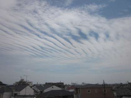 5年生では理科で雲の学習をしました。ある日の給食の時間,クラスの一人が「窓の外見て!あの雲なんていうんだっけ?」と指をさした先に広がる縞状の雲。結局,なんという名前の雲なのか結論は出なかったものの,学習したことで雲を見る目が変わったようです。みんなでしばらく雲を眺めて素敵な時間でした。