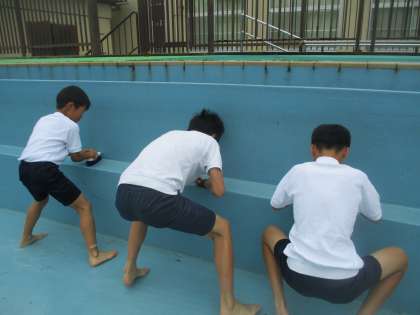 6年生が全校児童のみんなが気持ちよくプール学習が行えるように「プール掃除」を行いました。