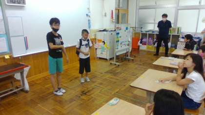 それぞれの係り活動をがんばったあとは,みんなの前で報告です。