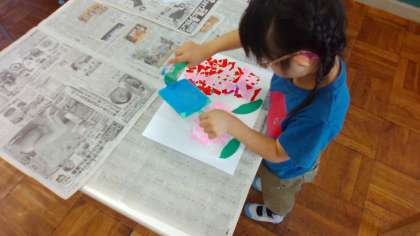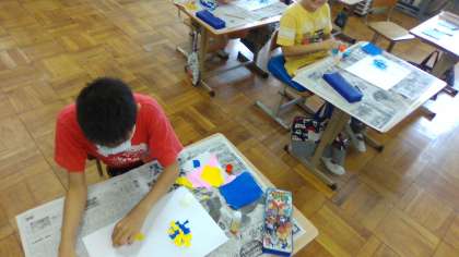 スパッタリングの手法を用いて,雨降りを表現しました。