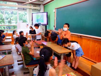 『読み聞かせ係』さんが絵本の読み聞かせをしてくれています。4年生になった子どもたちは、絵本にふれる機会も少なくなってきました。「保育園の時に先生によんでもらった本や!」と懐かしい記憶もよみがえるすてきな時間になっています。読み終わった後は、拍手で教室がつつまれています。