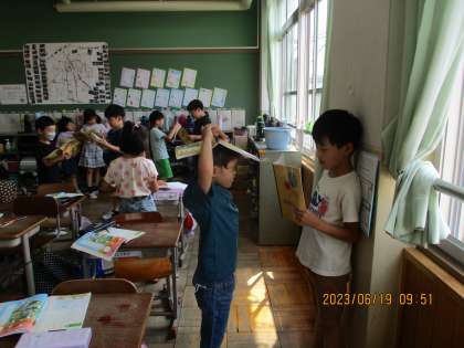 文を作ってから、全体交流をしたり、ペアで交流したりしました。