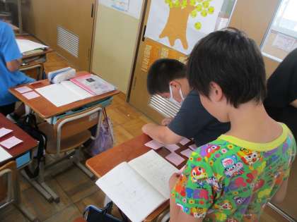この日は,友達の自主学習ノートを見て,工夫していていいと思ったところ,まねしたいと思ったところを見つけて,コメントを書き合いました。自分にはない工夫がたくさん見つかり,今日からの自主学習にさらに意欲を高めていました。