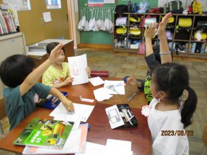 くちばしクイズの発表会をしました。クイズを出した後に,図書館で調べたことを発表し,楽しそうに取り組んでいました。