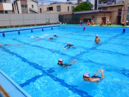 「平泳ぎ」にも挑戦しています。手と足の動きを練習しています。ポイントをおさえながら、一生懸命に取り組んでいます。少しずつできるようになっていくのが、うれしいようです。