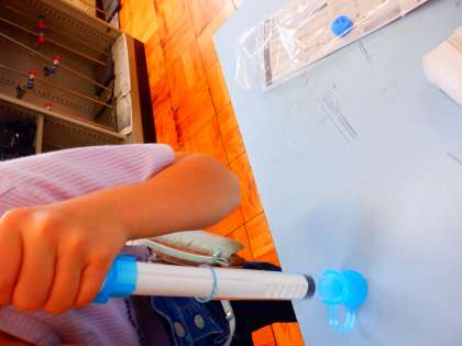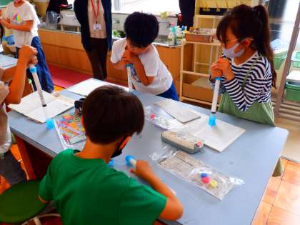 理科で『とじこめた空気や水』の学習をしました。「空気をとじこめて力を加えると、空気の体積は小さくなる」「空気は、体積が小さくなると、手ごたえが大きくなる」ことがわかりました。