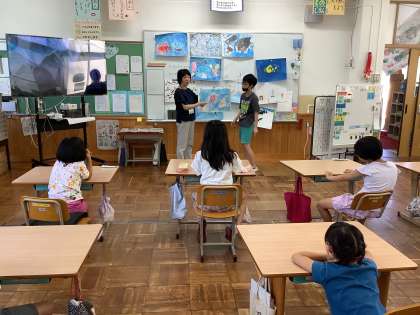 水族館への社会見学に向けて,図工では海や川の生きものの絵を描きました。
