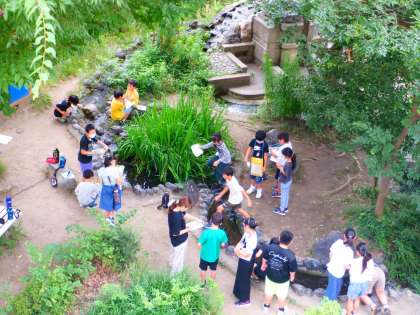 夏になり、日差しが強く、暑くなってきました。生物の様子を観察して、気づいたことを話し合いました。子どもたちは、前回の観察とくらべて生物のどのようなところが変わったかを考えていました。