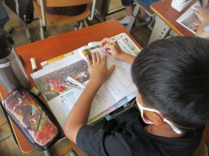 この日の道徳では,国と国とが理解し,お互いに尊重し合うためには,どんな気持ち,考えが大切か話し合いました。