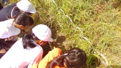 今日は実際に学校の中を探しに行きました。ダンゴムシやバッタが思った場所にいて、「やっぱりここにいた!」と見つけた子どもたちはとても嬉しそうでした。