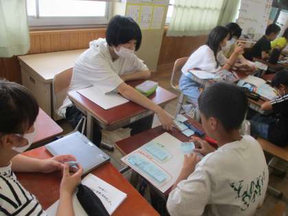 グループで自分の考えを出し合い,似ている意見をまとめたり,異なる意見を分類したりして整理しました。友達と話し合うことで,自分には見えていなかった視点に気づくことができましたね。