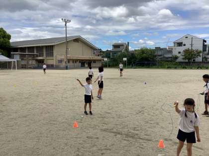 運動会の練習のあとは,大縄跳び,短縄跳びに挑戦です。