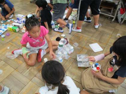 生活科で、廃材を使って工夫して遊ぶ学習が始まりました。