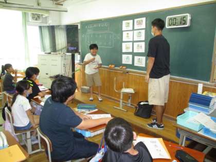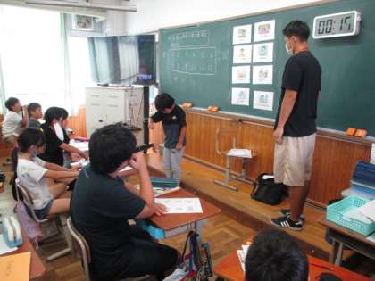 ジェスチャーで仕事内容を伝え、英語で答える活動をしています